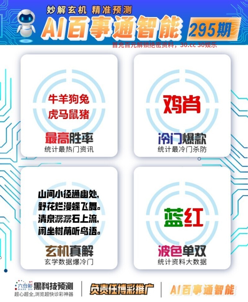 295期:AI百事通 诗:山间小径通幽处,野花烂漫蝶飞舞。清泉潺潺石上流,闲坐树荫听鸟语。 玄机真解:山间小径通幽处,野花烂漫蝶飞舞。清泉潺潺石上流,闲坐树荫听鸟语。解鼠牛龙兔虎鸡 爆款六肖:鼠牛龙兔虎鸡 |
